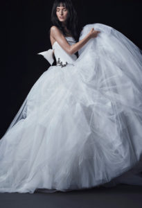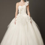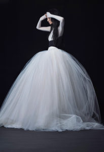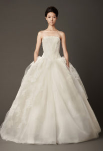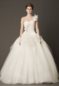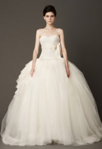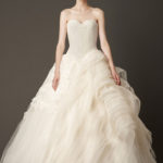 VERA WANGのウェディングドレスの中で、日本では最も有名なデザイン。胸元のハートカットにウエスト部分のVライン。たっぷりとしたチュールが人気の通称”バレリーナ”と呼ばれるVERA WANG代名詞的ウェディングドレスです。